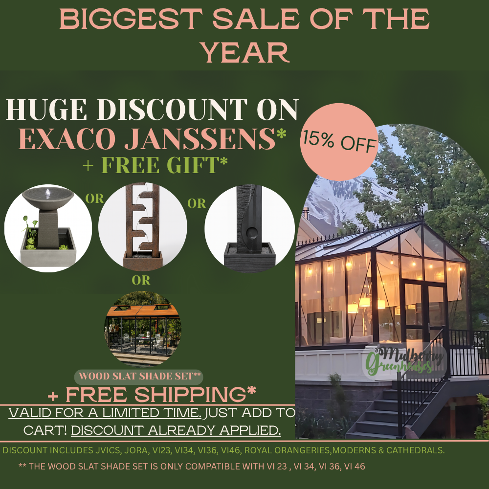 FOR A LIMITED TIME ENJOY 15% OFF EXACO JANSSENS GREENHOUSES* + FREE...